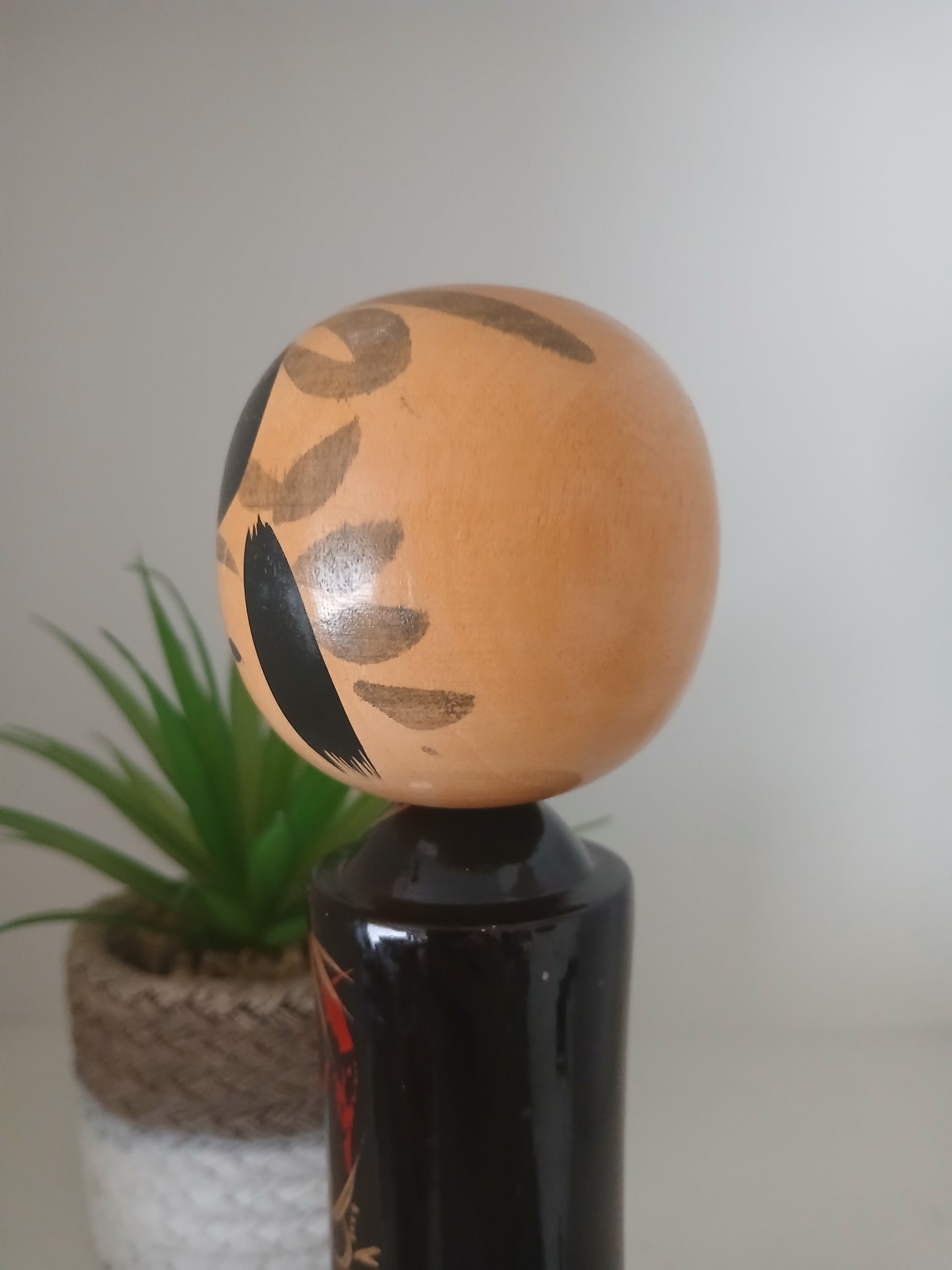 Lovely vintage black lacquer kokeshi by Takahashi Tatsuro
