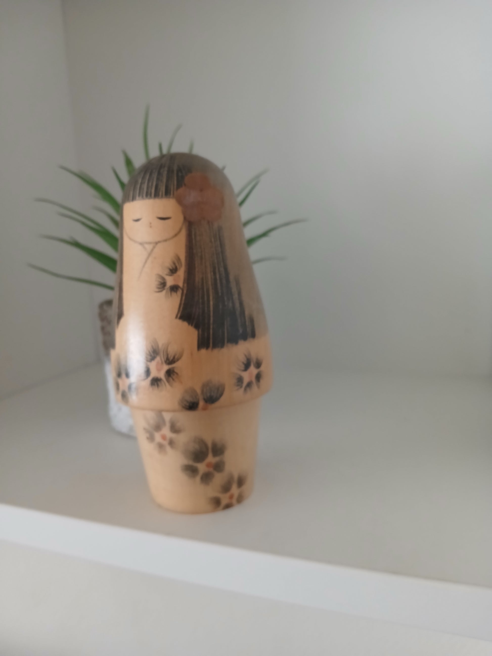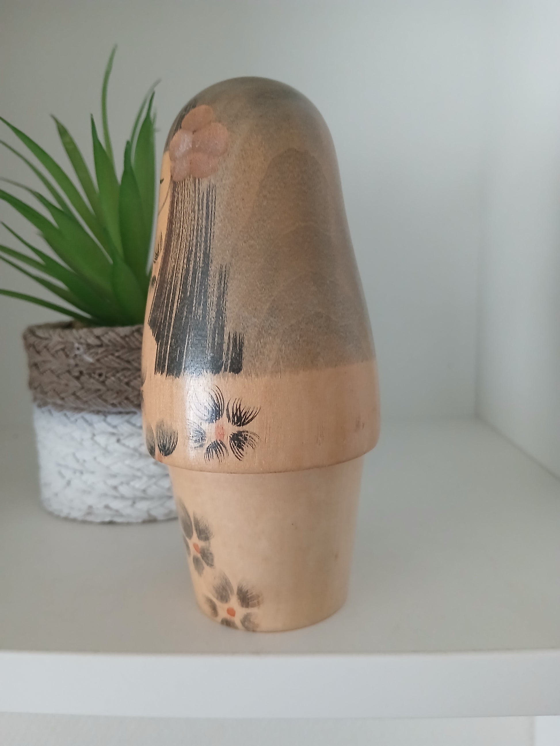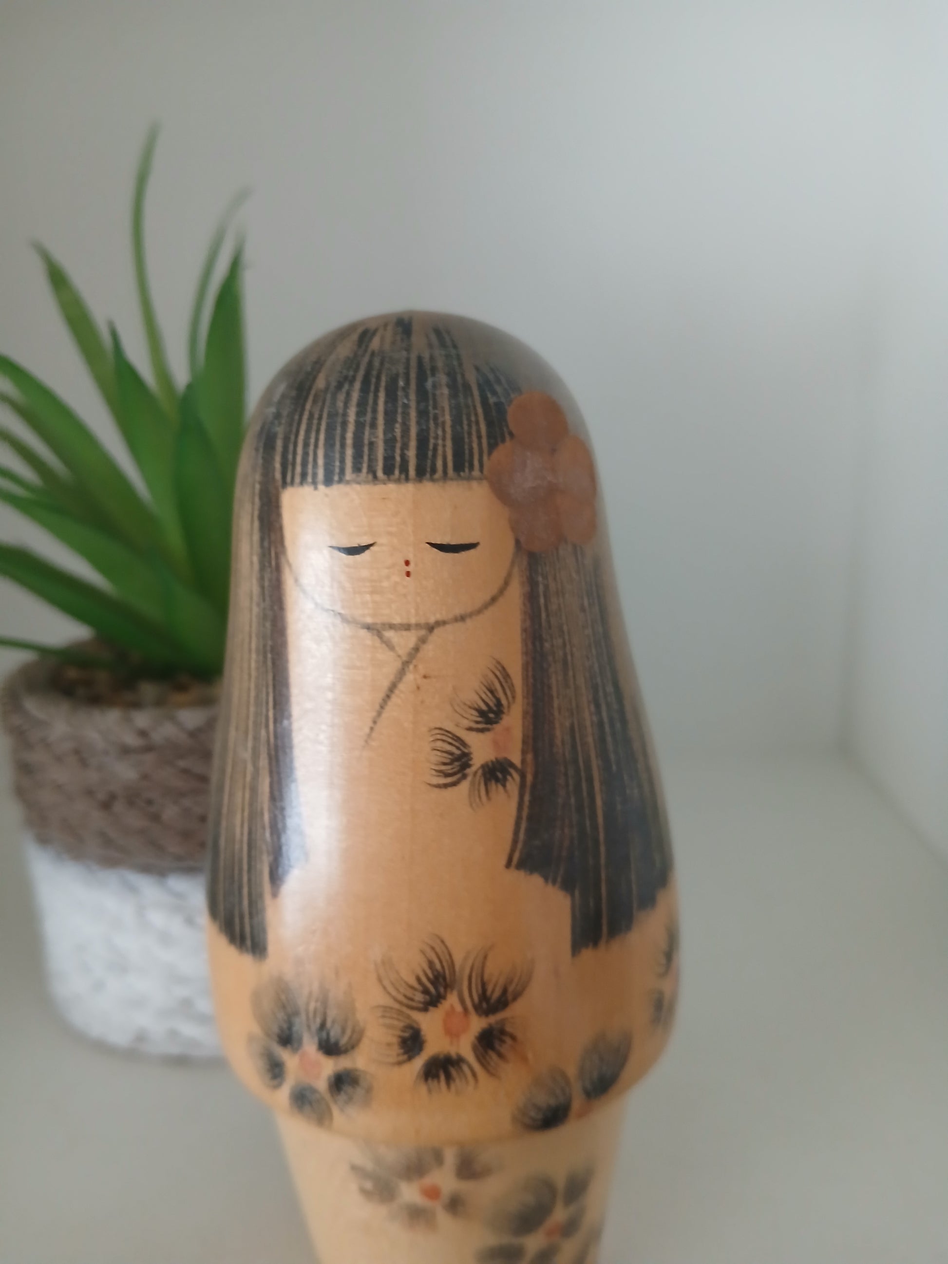 Lovely vintage creative kokeshi by Norio, the kimono is beautifully decorated with a flower motif.
