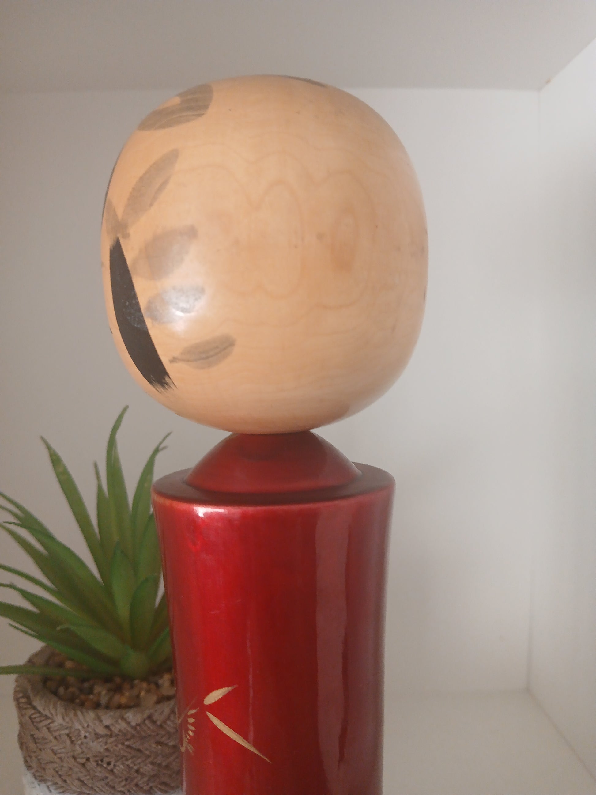 Lovely vintage red lacquer kokeshi by Takahashi Tatsuro