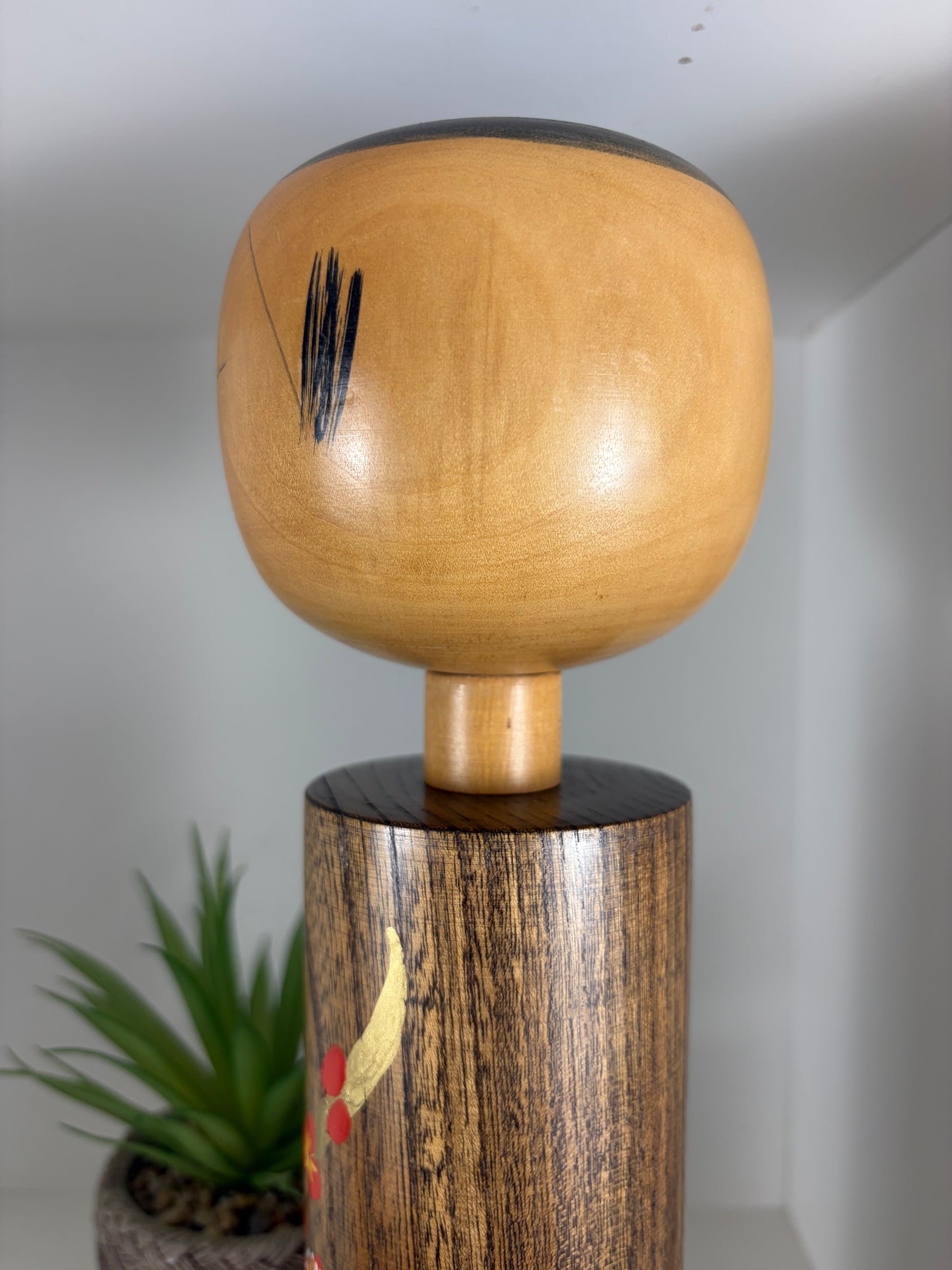Overall, this kokeshi reflects Takahashi Hashime’s signature style: a harmonious blend of simplicity, craftsmanship, and symbolic floral imagery. It is a timeless piece that celebrates both the beauty of natural materials and the quiet elegance of traditional Japanese folk art.