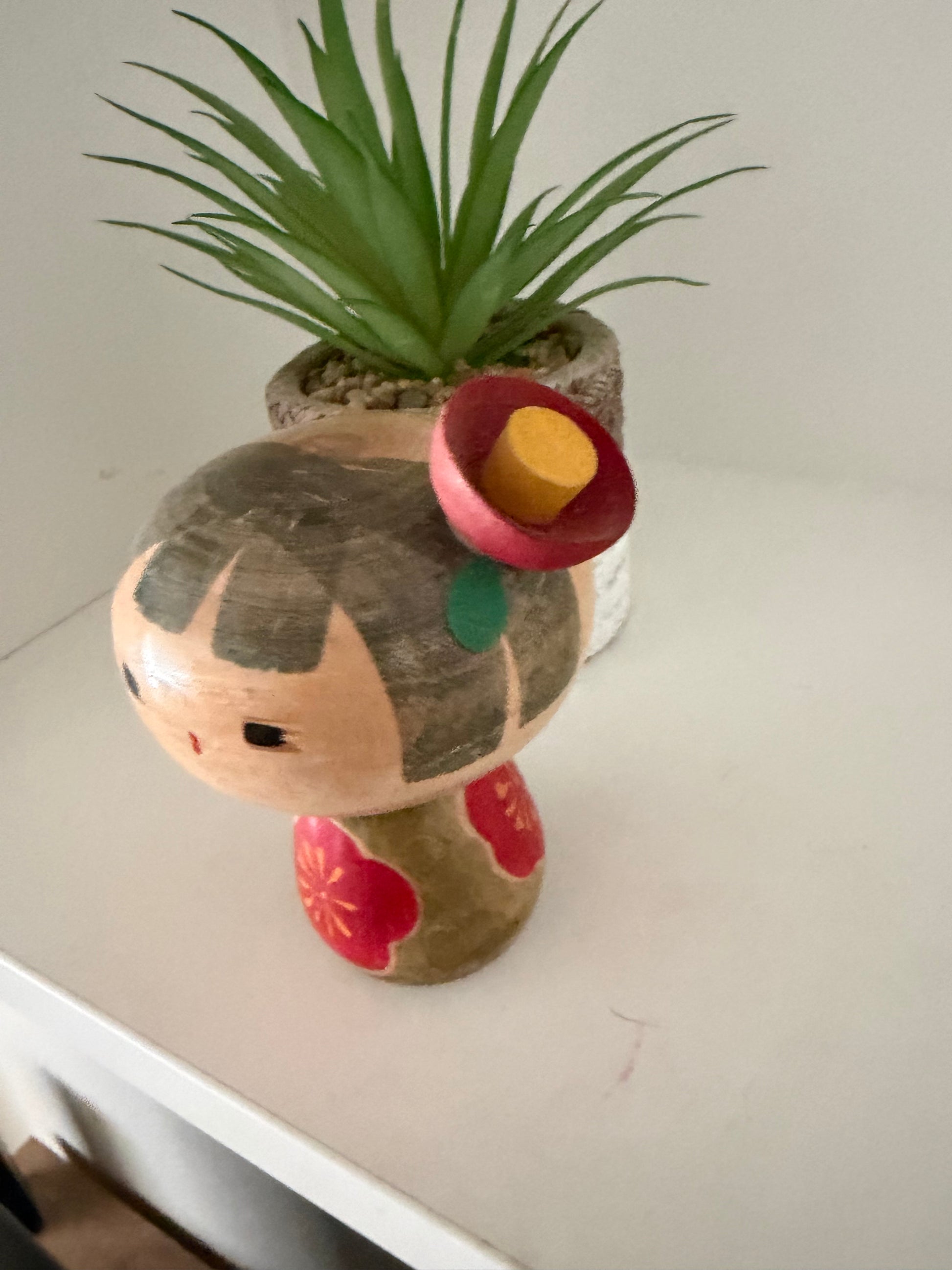 Very cute Sosaku kokeshi with a flower in her hair.