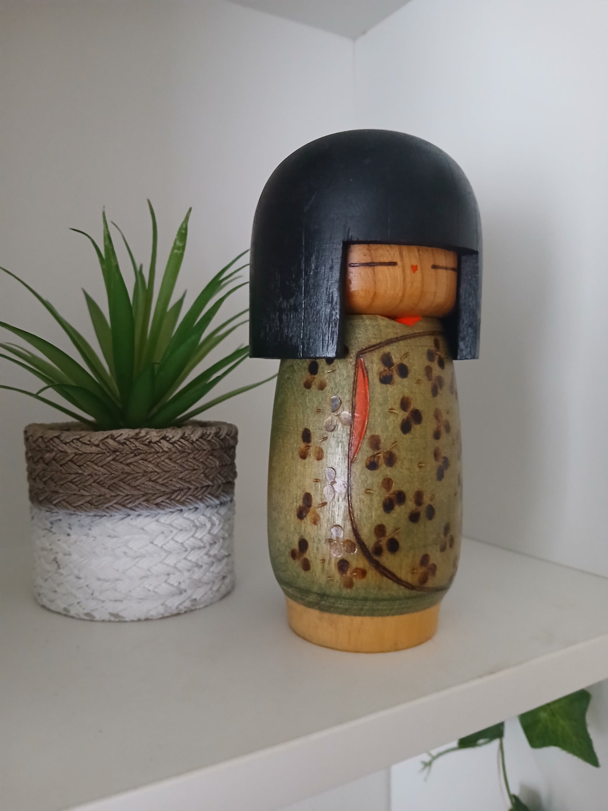 Please look carefully at the pictures to determine the condition of the kokeshi. she as a tin crack on the back of the head, see last picture.