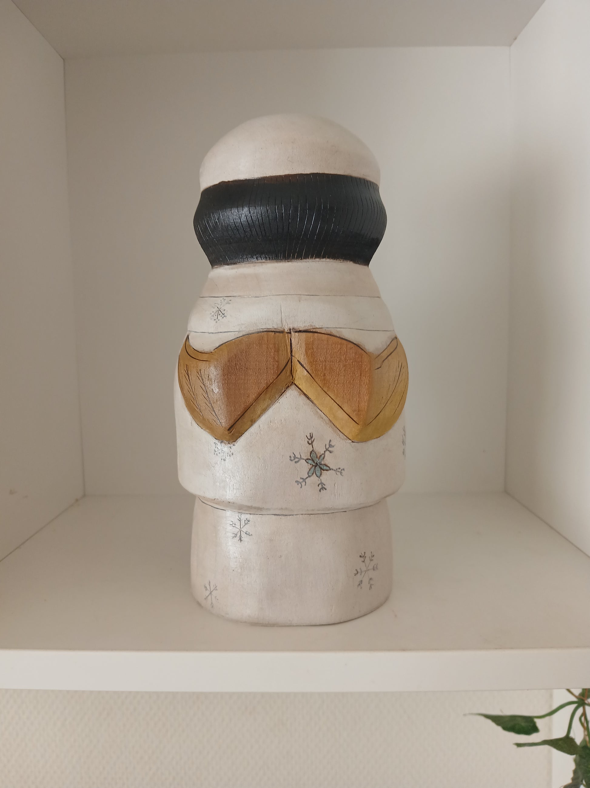 This kokeshi is part of the Christmas serie from Yuko Yamazaki for Kokeshiparadise, with a total of 8 pieces in the serie. All one of a kind pieces!