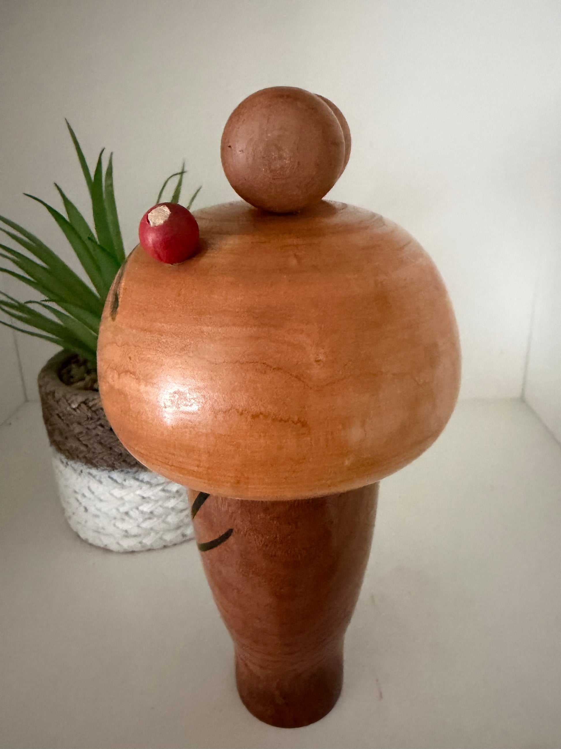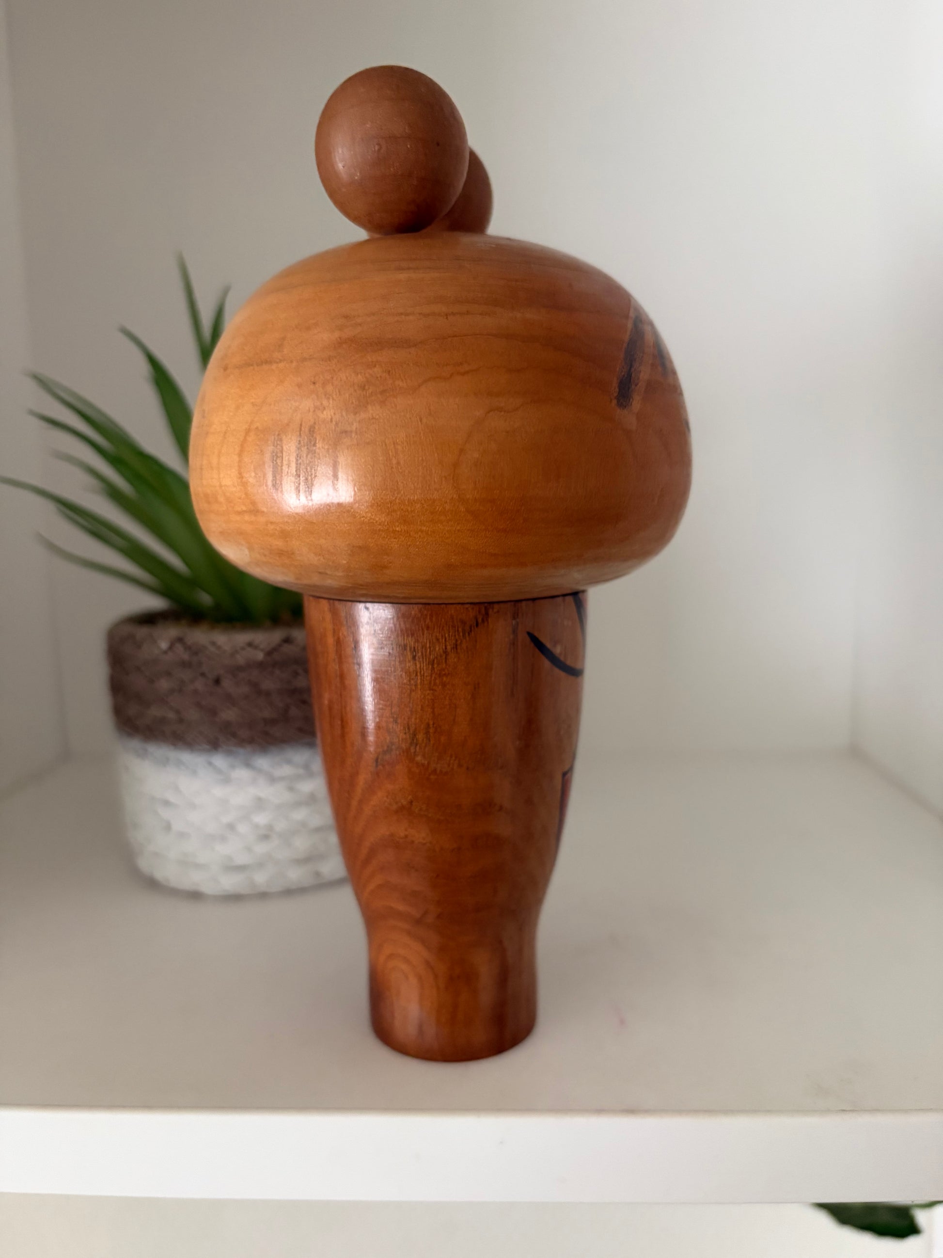 Overall, this piece exemplifies the fusion of refined woodturning, expressive simplicity, and modern design, making it a distinctive and collectible example of creative kokeshi art.